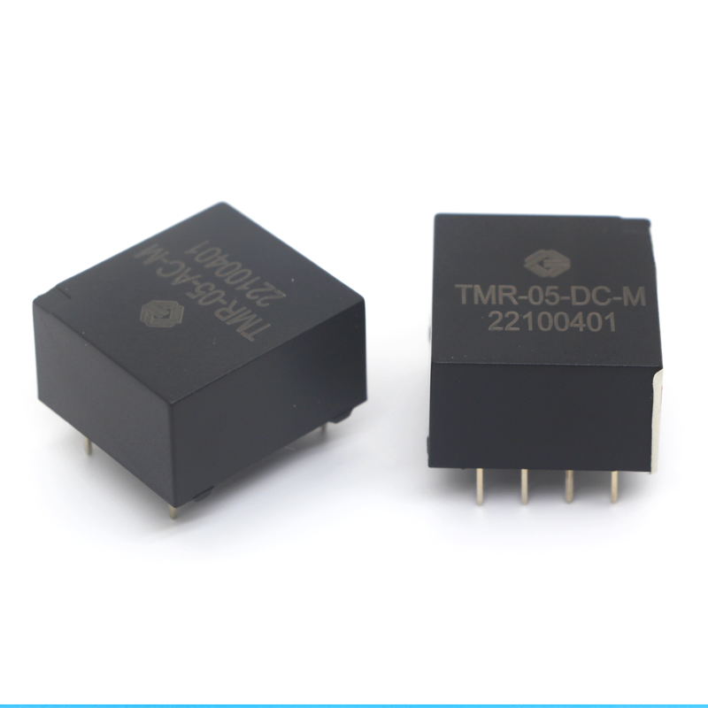 該產(chǎn)品基于TMR磁阻效應(yīng)技術(shù)開發(fā),原邊電壓通過原邊電阻轉(zhuǎn)換為原邊電流,原 邊電流通過TMR轉(zhuǎn)換為副邊電壓,通過閉環(huán)方式達(dá)到磁通量相平衡,副邊電壓便 能精確地反應(yīng)原邊電壓。